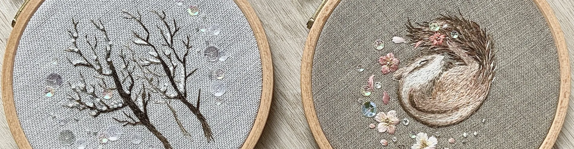 刺繍作品を製作途中の画像を添えてご紹介しています。