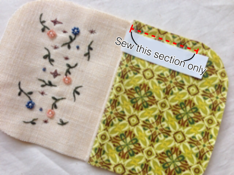 ① Place the felt-backed outer fabric and the lining fabric Right Sides Together (RST), then sew around the edges.