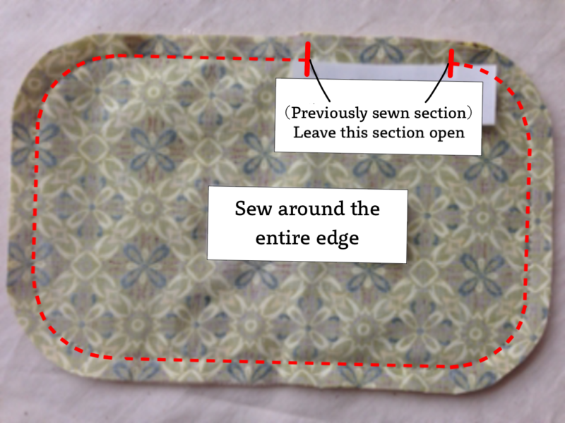 ⑤ Sew around the entire edge, leaving the previously sewn section open.