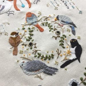 刺繍作品を製作途中の画像を添えてご紹介しています。